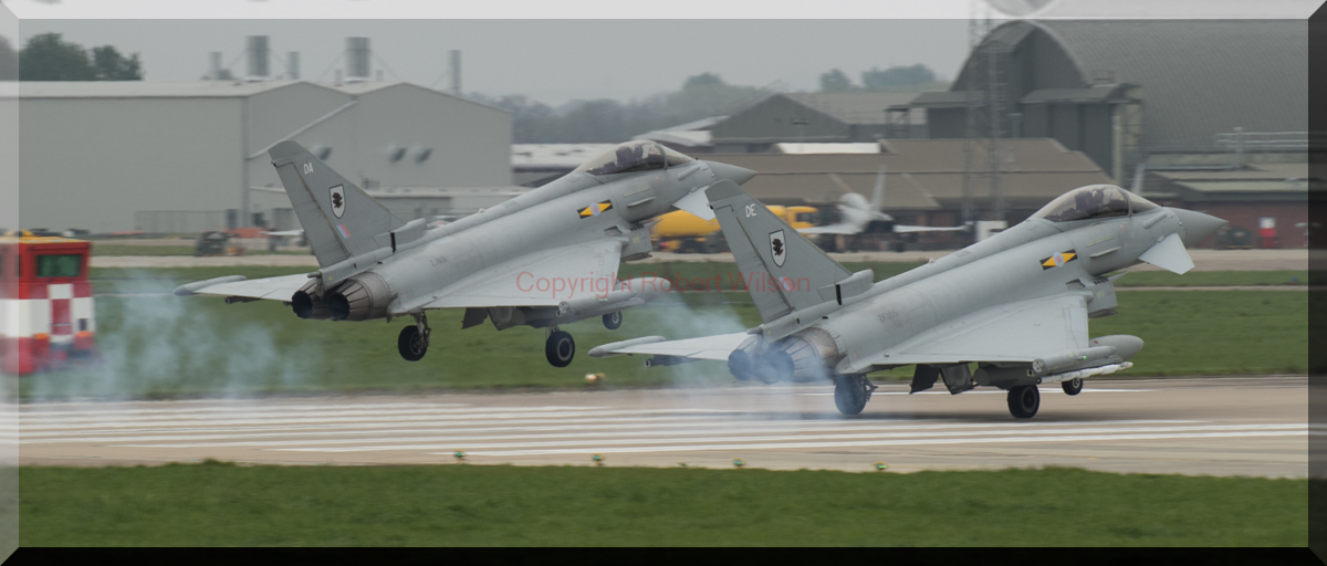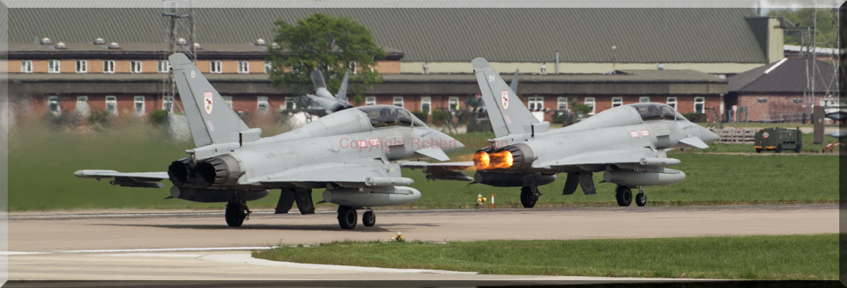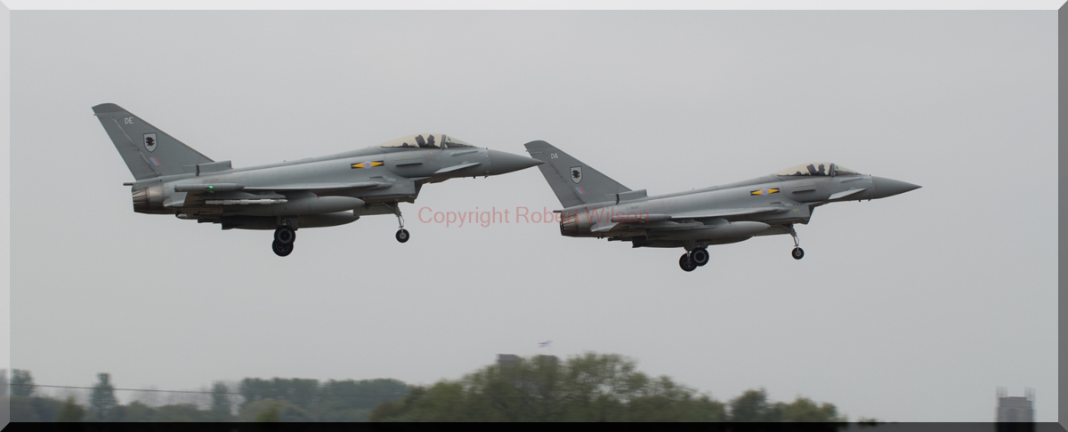 Today is my first day of the week at RAF Coningsby. They were using Runway 07 and it was a pretty goodday to be flying. Today saw four Typhoons depart for Šiauliai Air Base in Lithuania for the RAF’s contribution to the NATO Air Policing Mission of the Baltic states. Three of the jets went out fully armed.I have finally managed to get some decent pair landing shots. Looking forward to tomorrow.