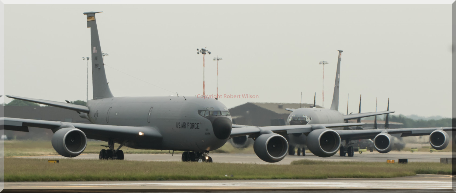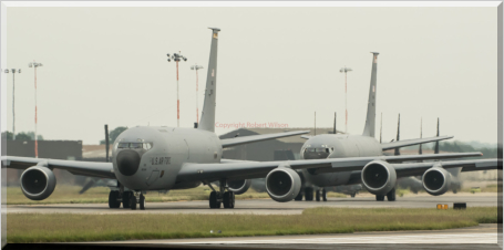 Today I visited RAF Mildenhall after seeing what had been arriving the day before. The Internet is great for things like this. I decided that it would be well worth the tripand I certainly was not dissapointed. There were twelve visiting tankers on the ground including four from Sioux City, Iowa ANG. I had never before seen a Sioux City tanker. The movents started just before 9am and by just after 12pm there had been forteen tanker movements plus the RAF RC-135W with the 100th anniversary tail of51 Squadron went out for the Queens birthday flypast. It was a great day, I made twelve new tankers.