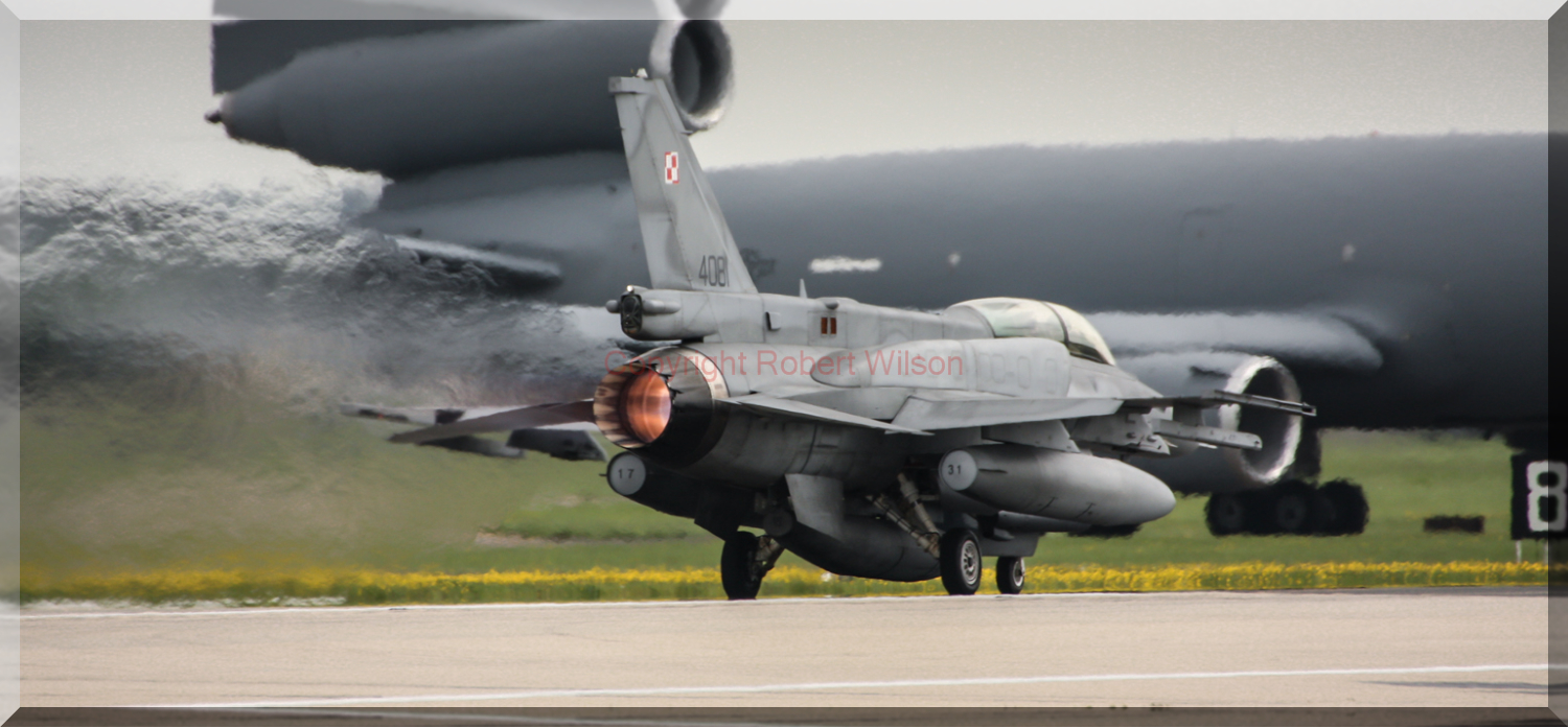Today was my first visit of the year to RAF Mildenhall. It turned out to be a great choice. I normallybook my time off at the beginning of the year and take pot luck as to what I may see. Today therewere ten Polish F16’s passing through on their way to Red Flag at Nellis Air Force Base. I managed to get six of the ten as a KC-10 broke down and couldn’t take the last four. Two of the ten were air spares and I managed to get them returning.